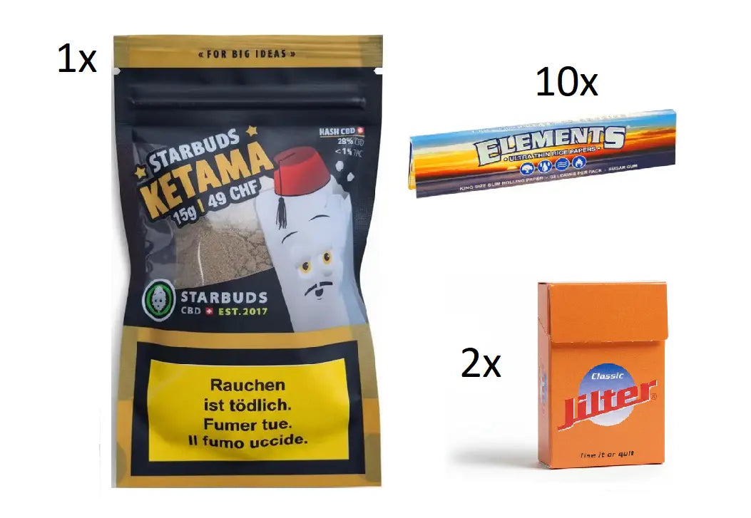 Set 15g Ketama CBD Hasch, 10 Paper, 2 Jilter