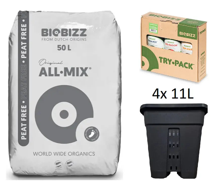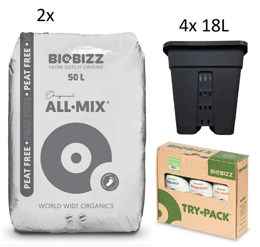 Set mit 4 AeroPot 11L, Biobizz-Erde und -Dünger
