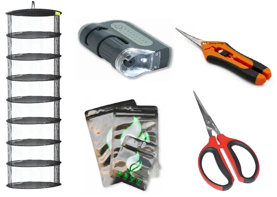 In diesem praktischen Ernteset findest du ein Mikroskop , 2 Scheren, ein Trocknungsgitter und 4 Aufbewahrungsbeutel.